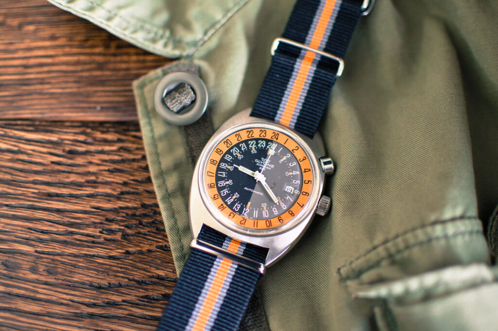As far as what a pilot watch looks like, the answer isn’t so simple. For a tool that’s evolved to suit various needs, the pilot watch has developed different characteristics based on its use. Complex chronographs, like those produced by Breitling, contain a stopwatch feature for timekeeping and a slide rule bezel. This unique bezel design helps pilots calculate speed, distance, and fuel consumption all on the wrist. Some chronographs will also have an additional flyback complication. This allows the wearer to use the stopwatch without having to stop the chronograph. In short, to reset the timer, just press a button. Then, the seconds hand will “fly back” to zero and start again. These added complications make chronographs particularly useful for working pilots who need to measure time intervals while in flight. However, they also have their place in more casual use.