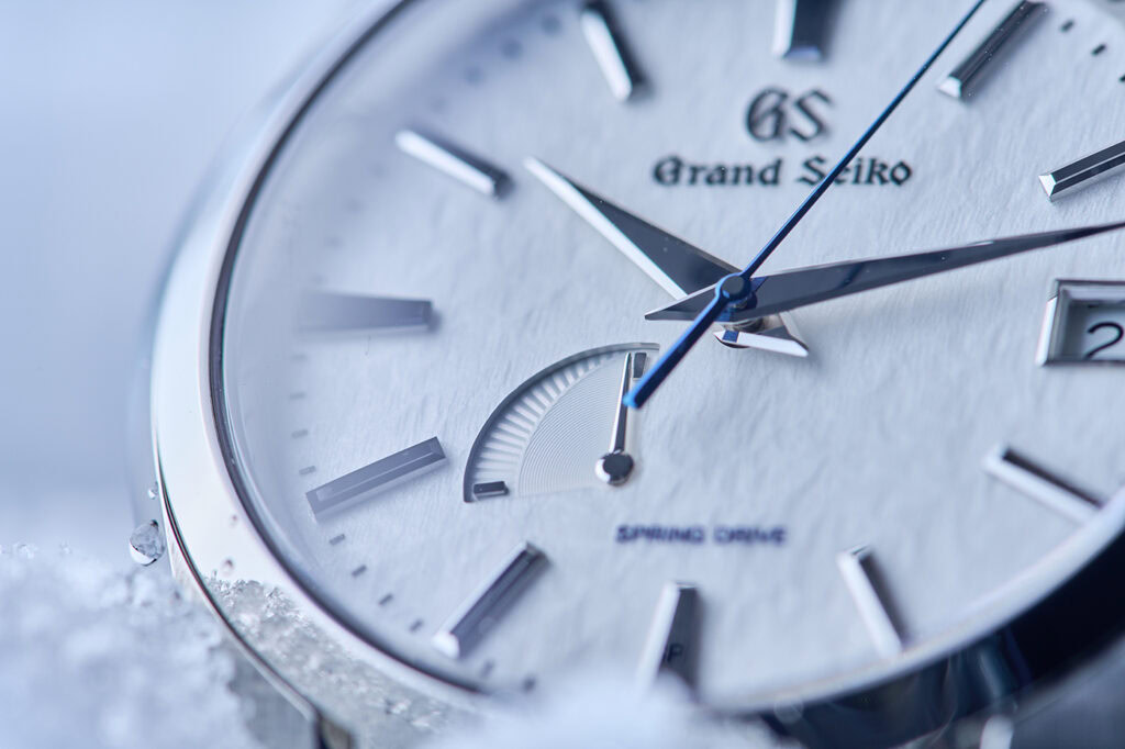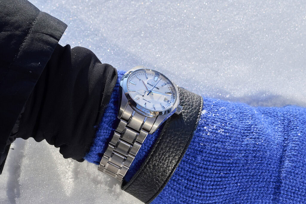 The softly shimmering snow-inspired dial isn’t the only thing mesmerizing about this model. Arguably more mesmerizing is the movement that powers this piece, Grand Seiko’s in-house Caliber 9R65, one of its Spring Drive movements.