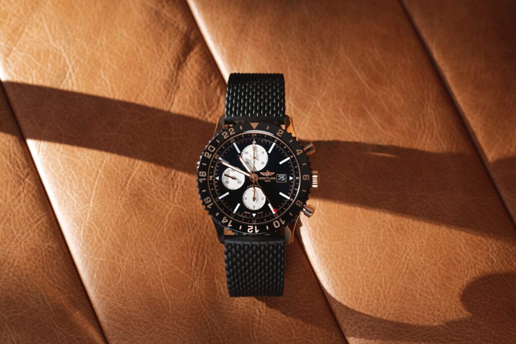 Indisputably masculine with the refinement of deep, red gold: this is the Breitling Chronoliner Red Gold Limited Edition. Produced in just 250 pieces, this watch perfectly blends a rugged aesthetic with the refinement of precious metals. The design draws inspiration from models past with a distinctive 1950s and 60s vibe. Yet, it’s equally modern with a rich, black ceramic bezel, rubber strap, and oversized 46mm construction. For the technically inclined, the Chronoliner Red Gold Limited Edition offers three time zones and a chronograph function. Each function has its place in a tricompax arrangement, creating perfect harmony on the dial.