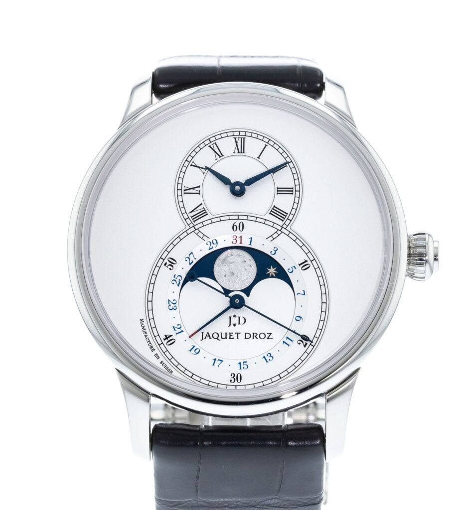 If you’re the type of watch guy that absolutely must have something that nobody else is likely to be sporting on their wrist, Jaquet Droz is a brand to check out. Although they’re part of the Swatch Group, production is quite limited. They use a design language that is unique, and maybe a bit of an acquired taste. This example, part of their Grande Seconde line, which uses – you guessed it – a large sub-seconds register south of the dial. It also incorporates a moon phase, a classic dress watch complication. We’ll forgive the Grande Seconde Moon for being on the large size for modern dress watch. The proportions here just further the dramatic impact of the unique design and dial layout. Top top is off, it has a lot of wrist presence.
