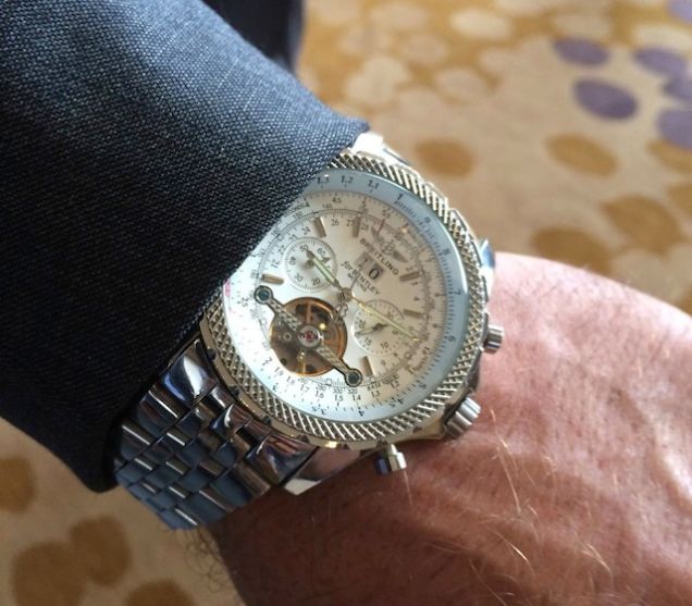With less than 40 days until the kickoff of college football, conference Media Days are underway with coaches and players informing the media about what to expect during the upcoming season. The Big 12 Media Days was held on July 21 – 22 in Dallas, TX. One of the biggest stories from the Big 12 Media Days this year is second year coach of Texas Tech, Kliff Kingsbury, and his “Breitling” watch. Kingsbury is known for his dapper style, so people tend to notice what he is wearing. When addressing the media at Media Days, journalists took notice of the flashy watch on Kingsbury’s wrist. The watch closely resembled that of a Breitling Mulliner Tourbillon watch that retails for over $100,000. An image of the watch from journalist Ben Baby quickly began to circulate around the internet and the passionate watch enthusiasts over at Breitling Source quickly named the watch as a replica. They pointed out that the date font is not accurate and the fact that there are pushers but no chronograph.