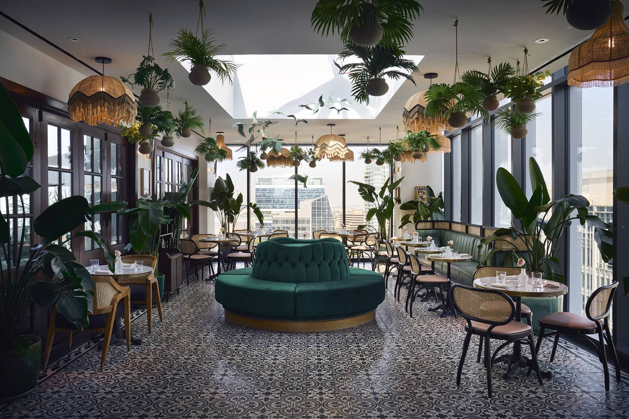 With jewel-toned interiors, velvet seating, and a piano tucked in the corner, Babou’s is a sophisticated late-night spot where you can sip on a Surrealist 75 or a Dali Dream Tini, gin and seedlip, respectively, and be an elevator-ride away from sleep.
