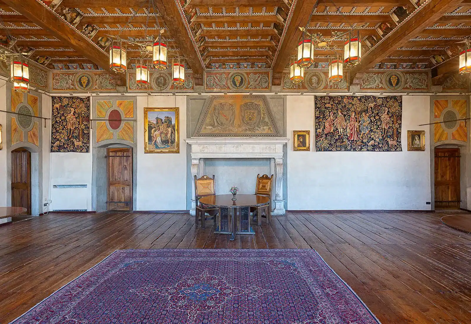 Down the road from Ivrea, Castello di Pavone offers 27 rooms and suites, as well as several elegant dining venues. Originally built in the 9th Century as a defensive fortress, Castello di Pavone stands majestically atop a hill, offering breathtaking views of the Alps and surrounding landscapes. Medieval vaulted ceilings, crenellated fortress walls, and a church dating back to 859 AD (complete with two Roman tombs from the fourth and fifth centuries BC) all sit within the fortified castle.