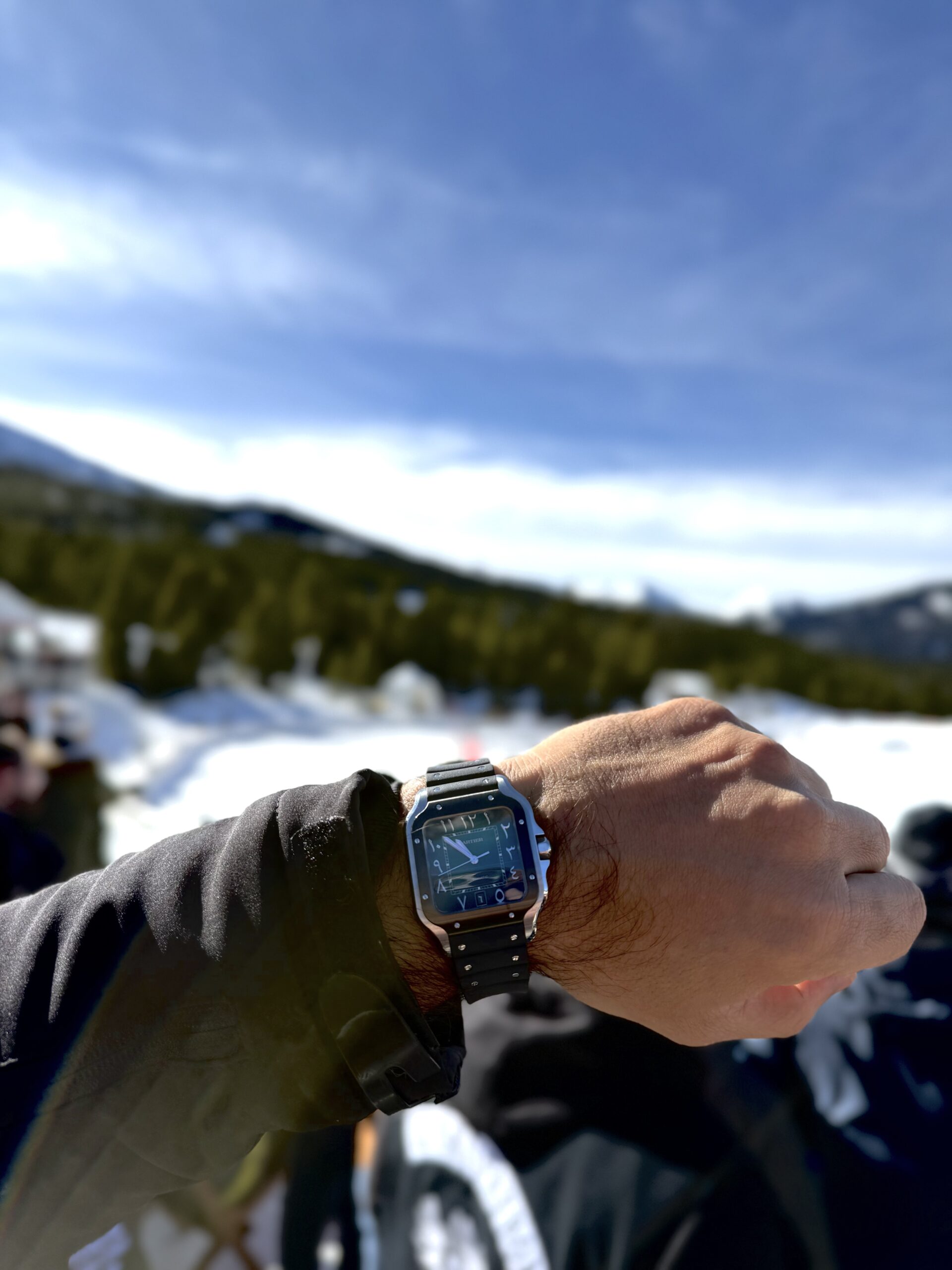 When Hammoud sat down with Crown & Caliber, though, the timepiece on his wrist wasn’t either of those watches, but a Cartier Santos, ref. WSSA0055, the Middle East limited edition with a green sunburst dial and Eastern Arabic numerals on a black ADLC bezel.