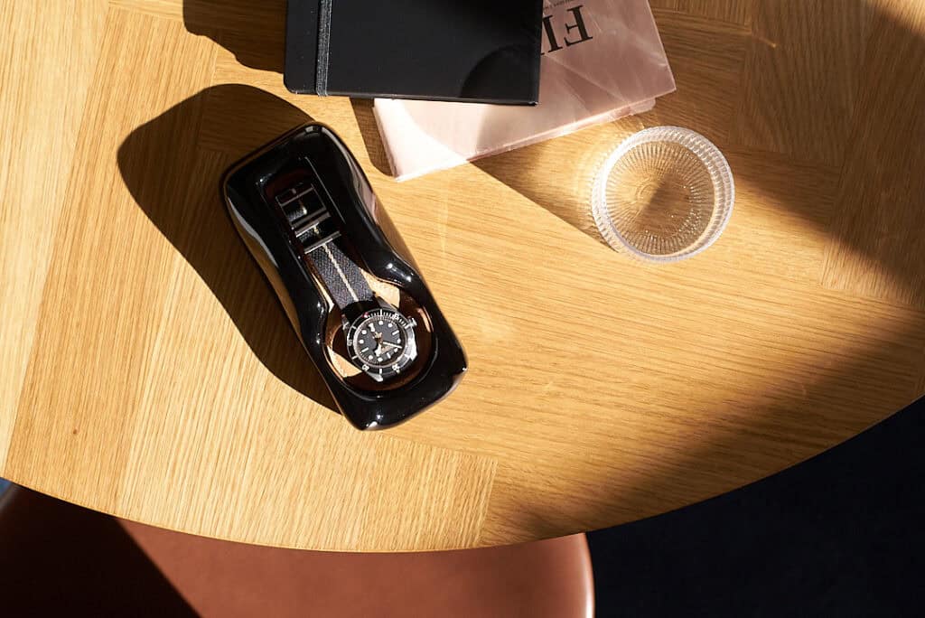 Our take: it’s one thing to opt for a watch-winder, another to store in a safe. But for those in-between moments, at the computer, pre-shower, or even for the night, a designated spot for today’s timepiece just makes sense.