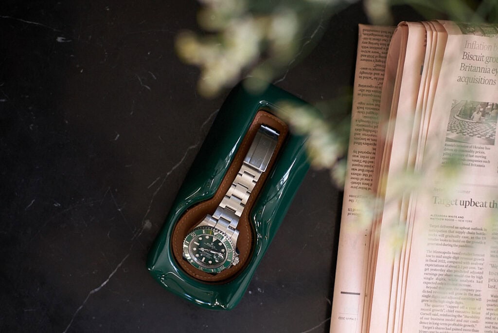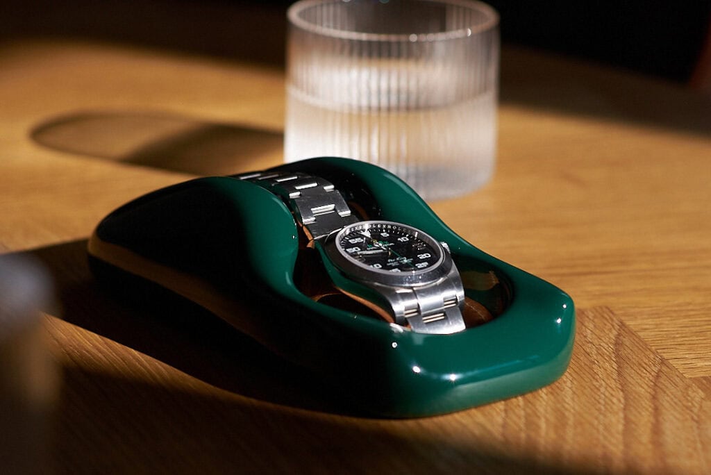 It’s not that he hadn’t searched for an appropriate storage receptacle. This wasn’t for safekeeping or winding, but a dedicated place to admire and stow the daily driver, the grail, or whichever watch happens to be on the wrist. “I couldn’t find anything as special as the watch itself.” Everything felt like an afterthought, like something designed to fill space rather than hold meaning.