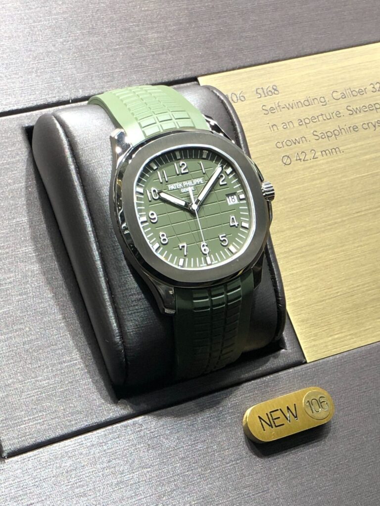 Rolex also unveiled several new iterations of the Day-Date. The next generation is available in either 18-karat yellow or everose gold with distinctive green or brown ombre dials respectively. In addition, there’s a new Rainbow Day-Date, Reference 128345. Next, we have three new versions of the Datejust. First, there are two variants of the 36mm. They come in a choice of white gold or Rolesor and a black sunray finish dial or white mother of pearl dial with diamond hour markers. Finally, Rolex takes a fresh spin on the 31mm Datejust, also in two options. You can select from an olive-green sunray finish dial with contrasting yellow gold hour markers. Or, there’s a rose sunray finish dial with monochromatic rose gold hour markers. Last but not least is the latest variation of the Cosmograph Daytona. This ornate model features an elaborate dial with pave diamonds and black lacquer.