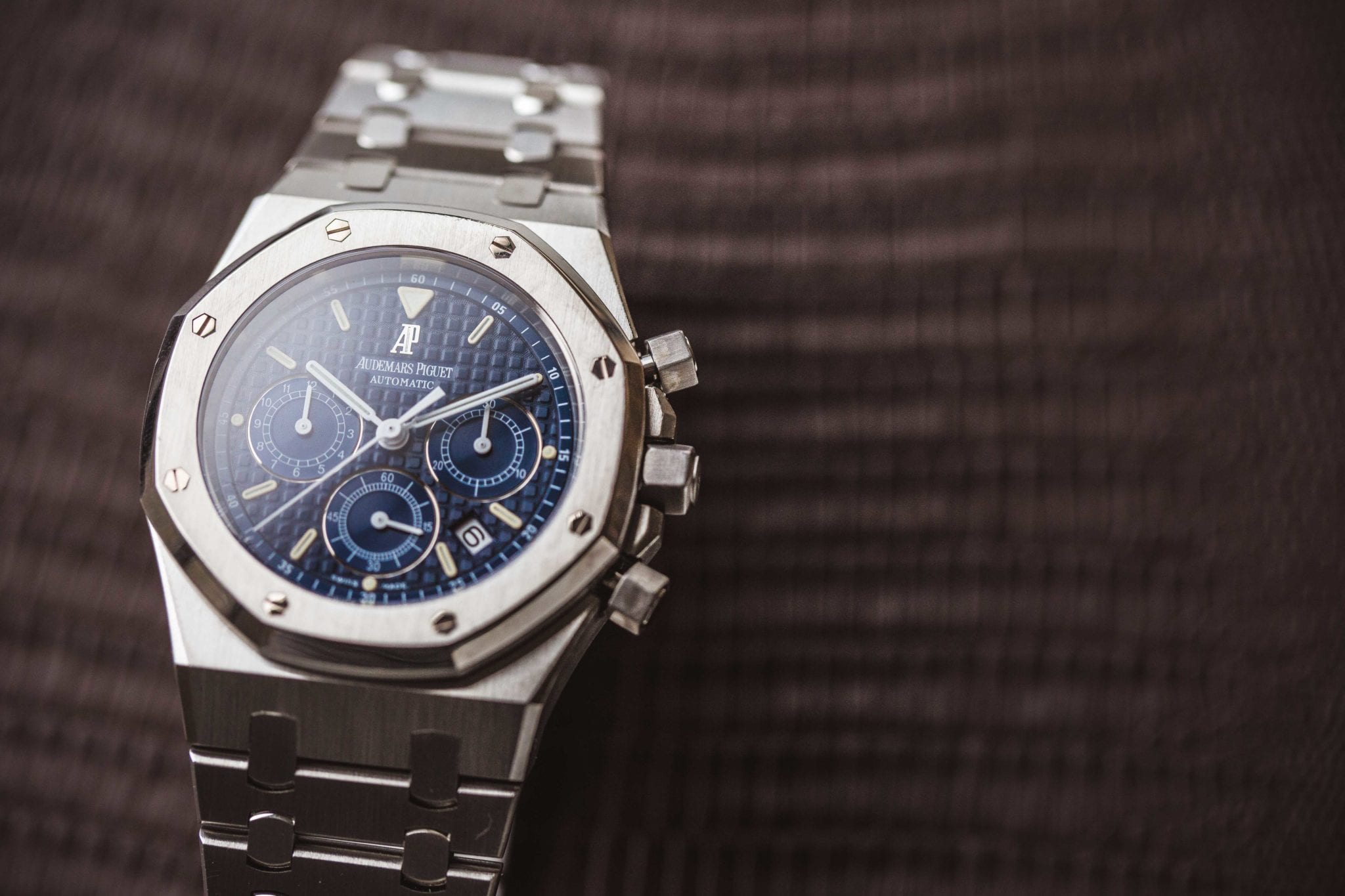 The tale of the Royal Oak begins in 1972. T’was the night before the Swiss Watch Show (now known as Baselworld). The managing director of Audemars Piguet told the illustrious designer Genta that he needed a design for a new watch to unveil the next day. The concept was for an all-new category of watch: the luxury sport watch. Genta’s genius allowed him to meet the challenge with ease, and the result was the Royal Oak. It featured a striking hexagonal bezel, unconventional exposed screws, and an integrated bracelet. Its hand-finishing gave it the polish of a dress watch, but it had the technical aptitude of a sport watch. The mission was accomplished, and a new breed of watch was born.