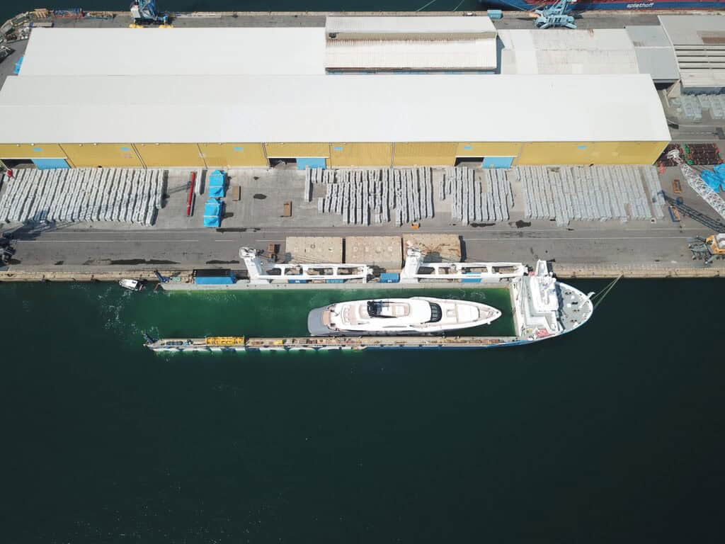 How a yacht is loaded depends entirely on size and weight. Most shipments are Lo-Lo, or lift-on, lift-off, requiring vessels with enormous crane capacity. “A lot of these boats are well over 100 tons,” Perez said, adding “if you include our rigging, our spreaders, and all that other stuff, we’re talking boats upwards of 200 to 300 tons.” In rare cases, Flo-Flo transport is used, where a cargo vessel partially submerges to allow yachts to float into position before being lifted clear of the water.
