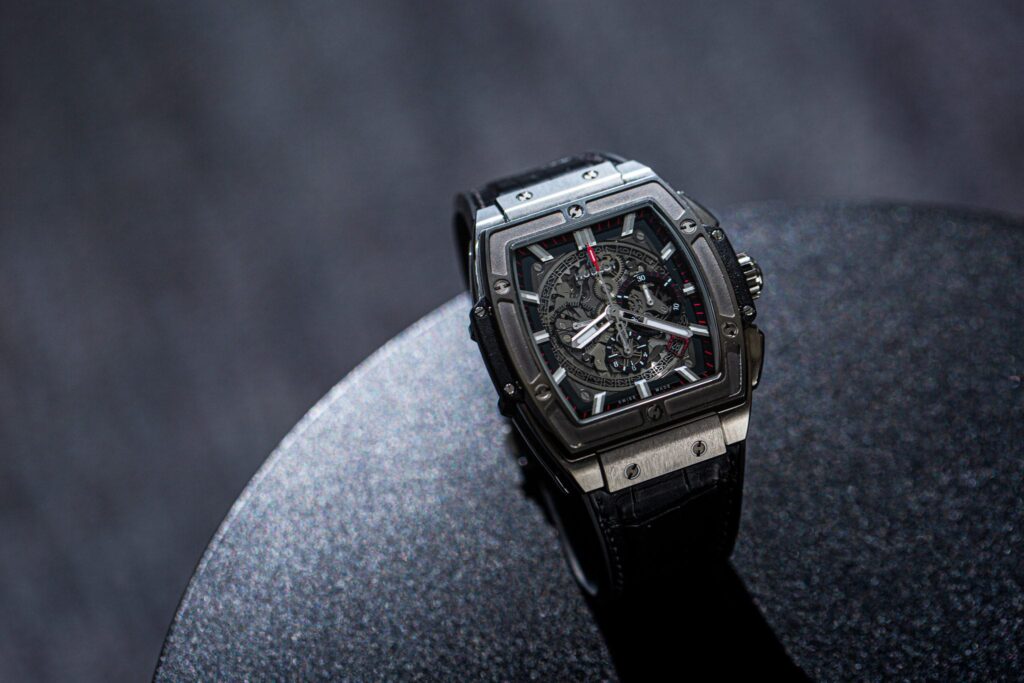 In 2014, Hublot put a new spin on their popular Big Bang model with the Spirit of Big Bang. The name really says it all. The model captures the spirit of the legendary Big Bang but, notably, in an entirely new case shape. Instead of the iconic octagonal design, the Spirit of Big Bang gets a tonneau construction. Like the Carrera Heuer 01 Chrono, we also get double skeletonization with the Spirit of Big Bang. Inside, the watch is equipped with Hublot’s Caliber HUB 4700 self-winding mechanical movement. The HUB 4700 is actually a modified and skeletonized version of the famous Zenith El Primero movement. You can see it in all its glory through the skeleton dial and display caseback.