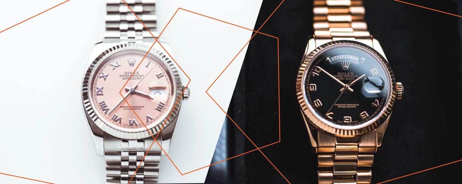 The Datejust first appeared about a decade prior to the President, in 1945. It was created in conjunction with Rolex’s 40th anniversary. To commemorate the occasion, the brand wanted to create a watch that was different than any other model they were offering at the time. The result was Rolex’s first self-winding, waterproof wristwatch with a date window on the dial and the brand’s signature Jubilee bracelet. Like the President, the first Datejust was only available in 18-karat gold. However, it has since become available in stainless steel.
