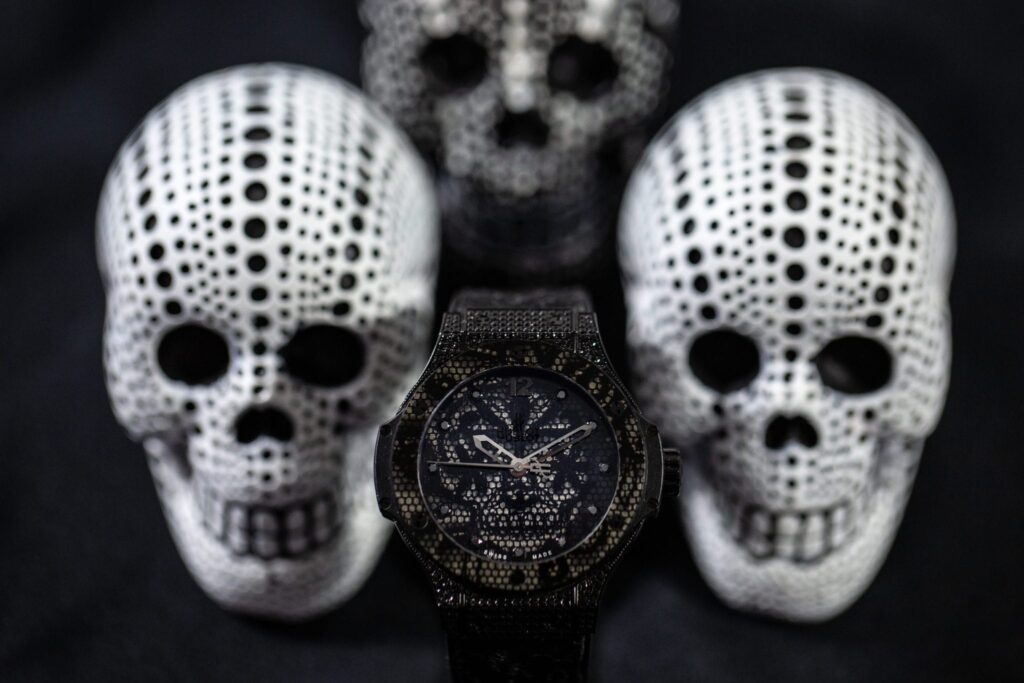Equally spooky and show stopping, there’s nothing quite like the Hublot Big Bang Broderie Stainless Steel Black Diamond Limited Edition. This incredibly unique limited edition model screams Halloween. It features a chilling skull design on the dial and a rubber and silk embroidered strap. However, the most impressive part of the design is the case, set with a whopping 198 black diamonds.