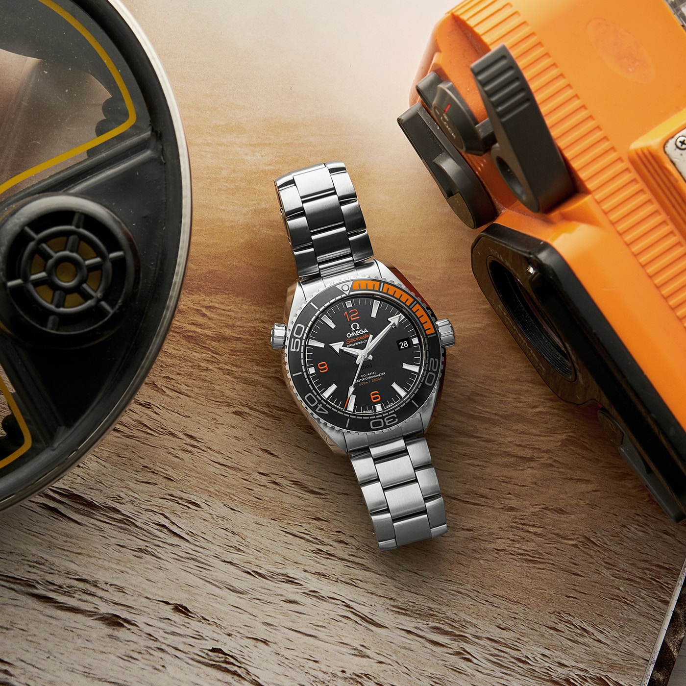 OMEGA used a first-of-its-kind, vulcanized rubber inlay to indicate the first 15 minutes of dive time in orange on the bezel of this Planet Ocean.