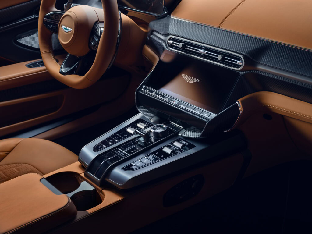 Open the door of a new Aston Martin and the polished wood veneer that once signaled old-world luxury has given way to something darker, lighter, and unmistakably technical: carbon fiber.