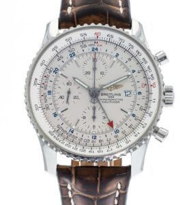 Today, the Navitimer is one of Breitling’s most instantly recognizable and highly sought after models. This iconic pilot’s watch has superb craftsmanship from the inside out, with Breitling’s signature oversized case design. The Navitimer World offers increased functionality to the original line. It houses the brand’s caliber 24 self-winding mechanical movement, which also features a dual time zone system. On a leather strap, this model will make traveling easy this fall.