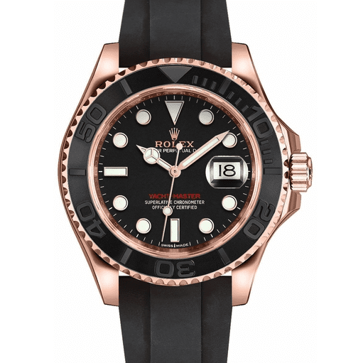 At Baselworld in 2015, Rolex unveiled their first model to feature a rubber style strap. For the occasion, they selected the Yacht-Master. First, let’s take a moment to consider their model of choice. The Yacht-Master family combines both form and function. While not quite as robust as the Submariner, it features similar capabilities of water resistance and a bidirectional rotating bezel. In contrast to its technical features, the Yacht-Master line incorporates precious metals, like platinum and gold, with stainless steel. This ultimately enhances the luxury aspect of its look and feel. With this balance of design and aesthetic in mind, the Yacht-Master has the essence of the luxury sport watch. Thus, it seems Rolex made a careful and thoughtful model selection to launch their first rubber strap.