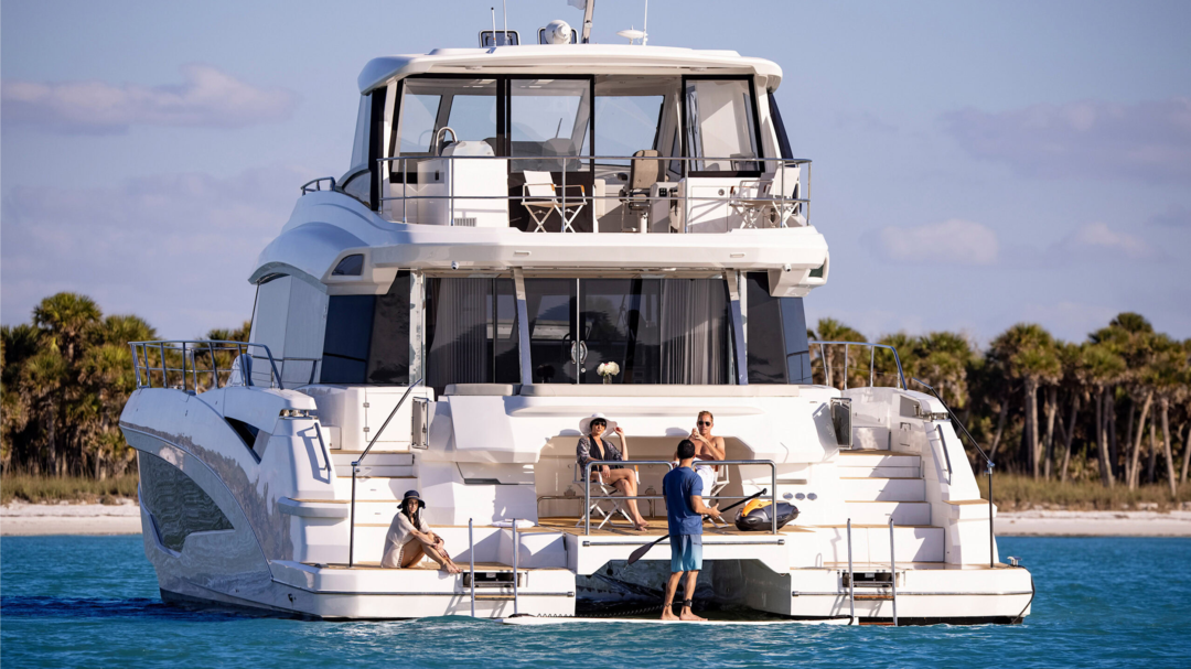 Among those leading the transition is Florida-based Aquila Yachts, which has quickly grown into the world’s foremost power catamaran brand. Its current 14-model lineup ranges from a 28-foot center console to an opulent 70-footer with six cabins and deck space for a party of 40.