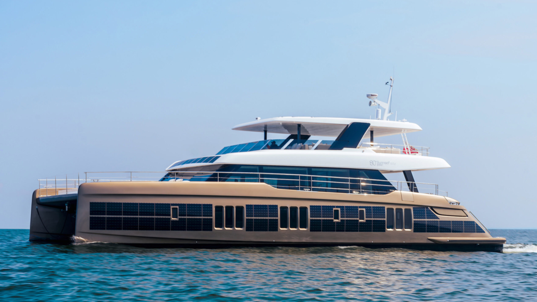 Sunreef is also staking its future on green propulsion. The yard recently delivered the 100 Sunreef Power Eco, its first all-electric 100-footer, fittingly named “Double Happiness.” Powered by four 180kW electric motors and a 990 kWh battery bank charged by wall-to-wall solar panels, Lapp says the yacht delivers silent, emission-free and reduced-cost cruising.